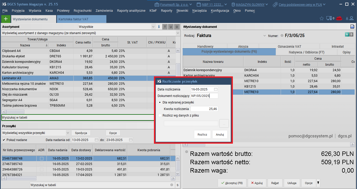 – rozliczanie przesyłki.